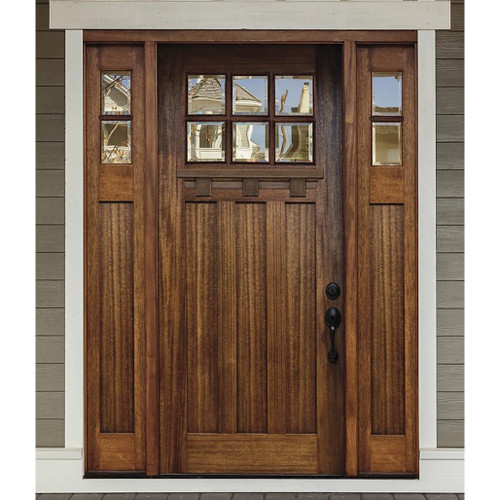 Small glass lites at the top. Simple lower panels.