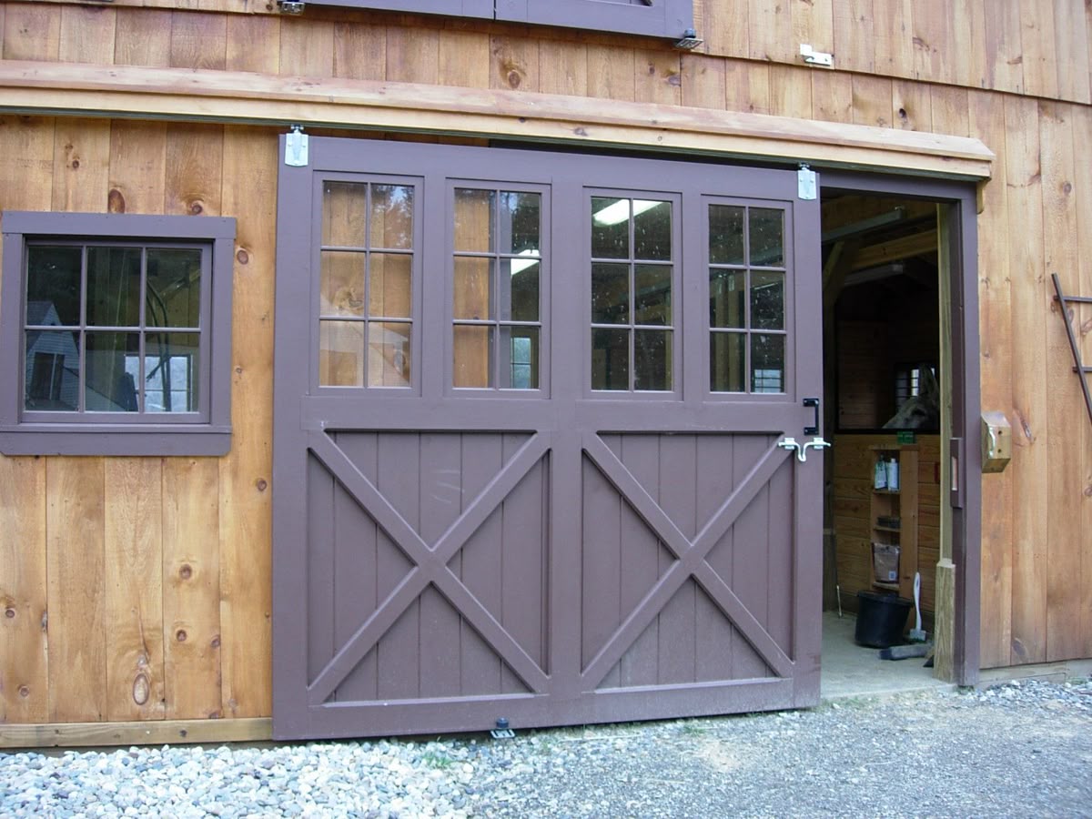 V-groove boards with rustic cross brace.